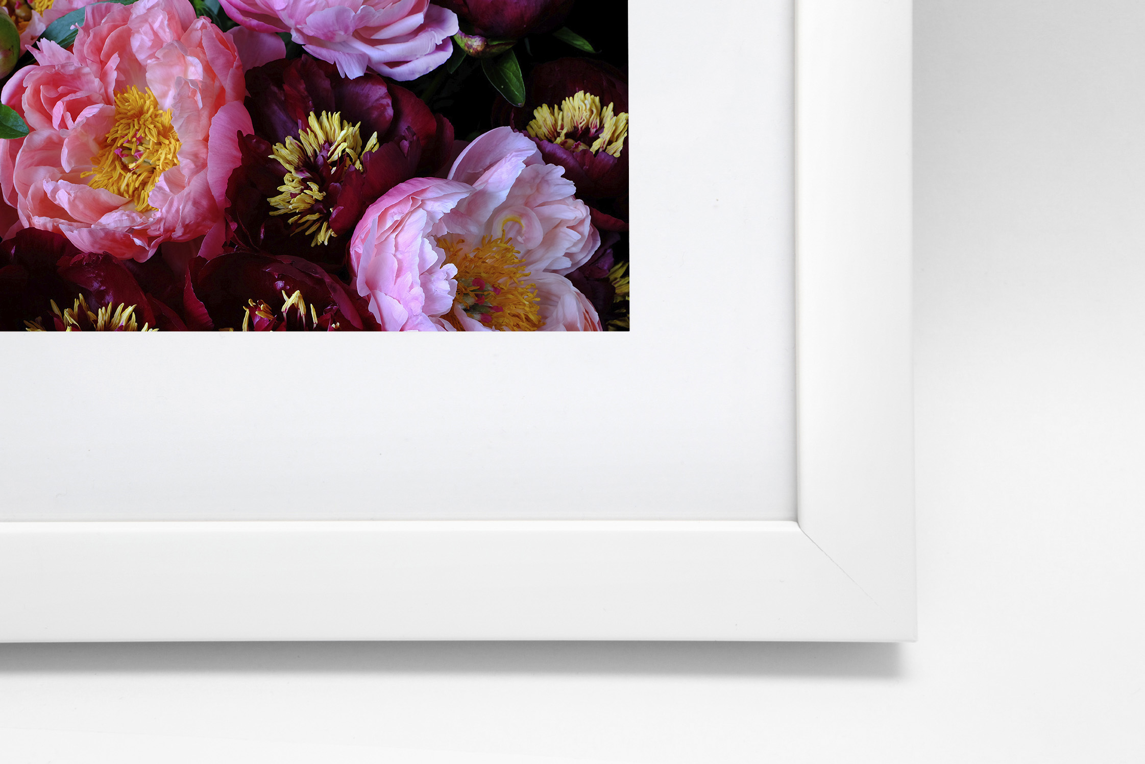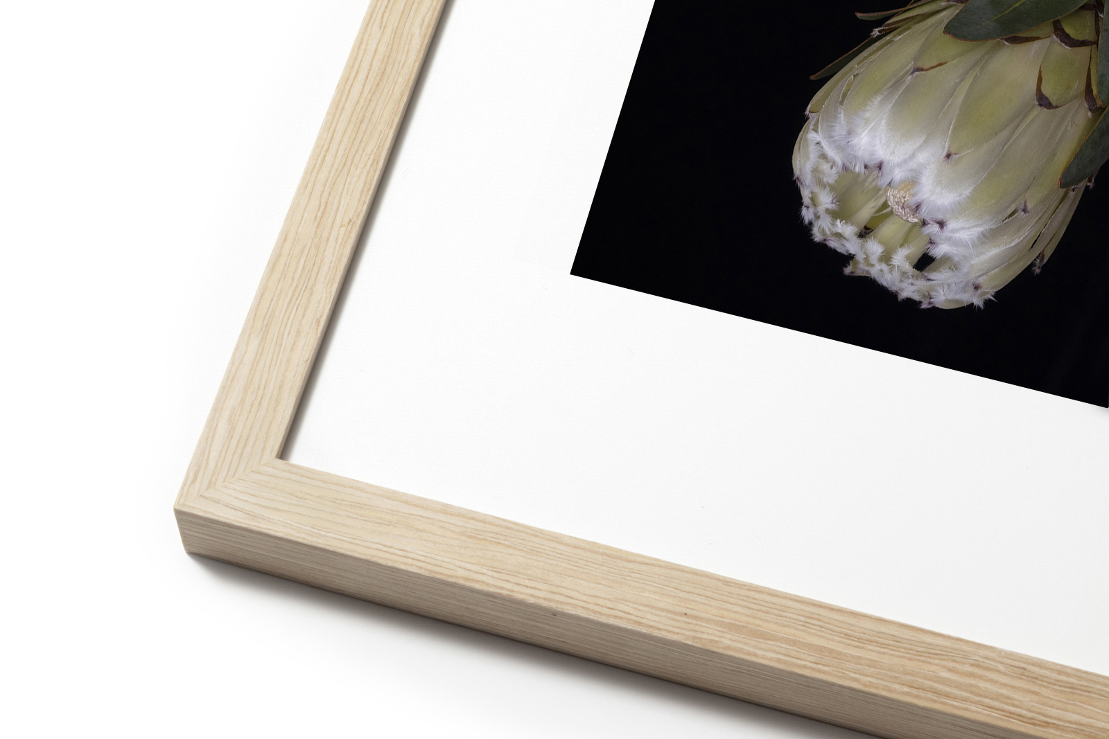 The frames are handmade to order by Queensberry and I offer three colours, Black, White and Oak.
